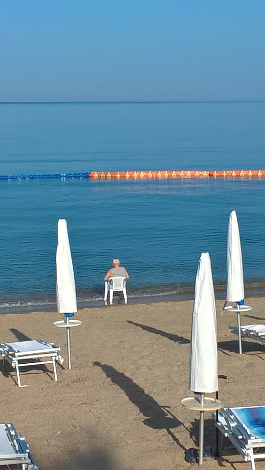 vista crescere: c’è un uomo, è solo, si è seduto sulla riva del mio mare; deve